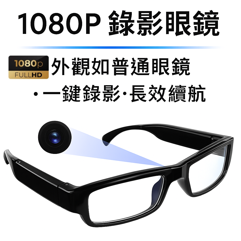 • 隱密錄影設計: 無發光、無提示聲,屬於針孔攝影設備,外觀與普通眼鏡無異。