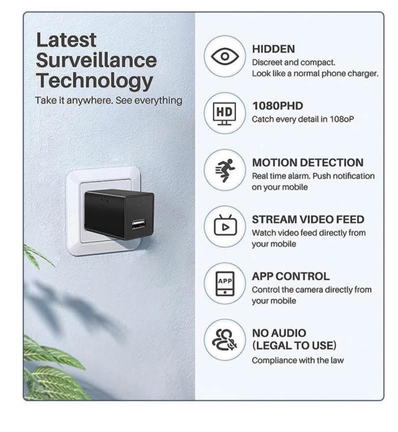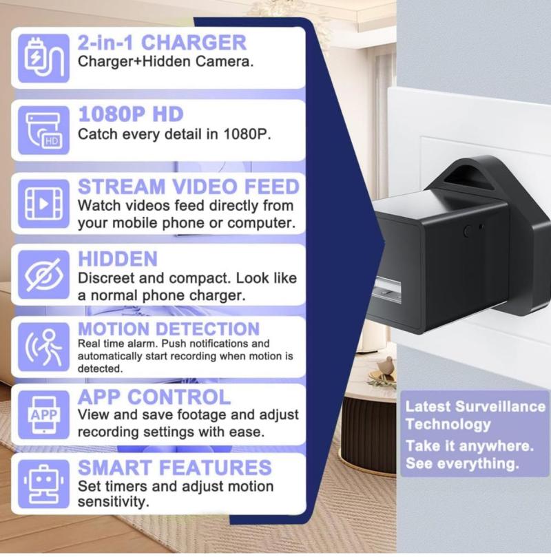 外型就係普通充電插頭,但其實內置高清鏡頭 🎥 插上電就可以使用,無需安裝、無需拉線 無燈|低調設計|融入環境 —— 👉 適合家居監察、長者照顧、寵物觀察等用途